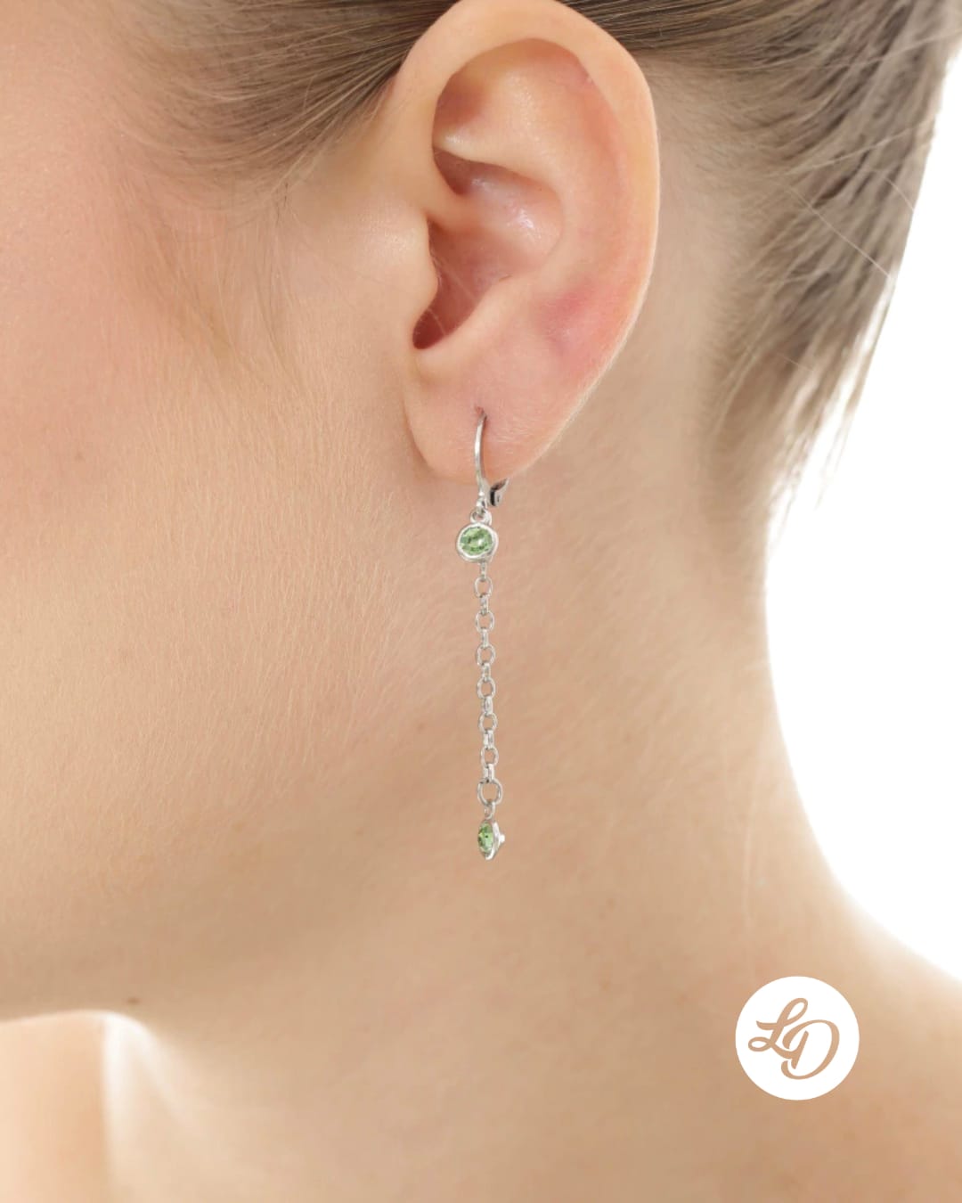 Brinco aço inox ARGOLINHA CORRENTE PONTO DE LUZ VERDE